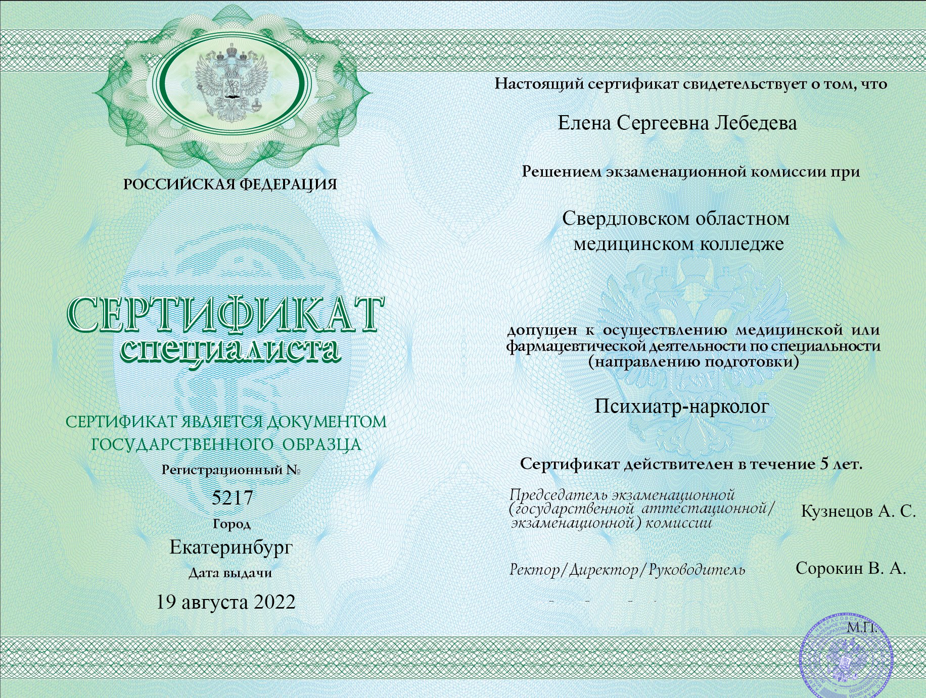 Елена Сергеевна Лебедева врач нарколог клиники доктора Стукаловой в Северской